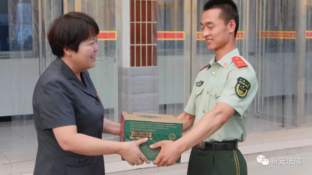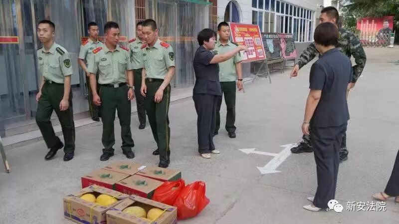 ▲高红同志向所有官兵同志们送去亲切问候,并为官兵们赠送了法制宣传大礼包以及纯净水、西瓜等慰问品,在炎炎夏日为官兵们送去清凉,为官兵们普及法律相关知识,进行座谈交流,为官兵们解答涉法问题,并诚挚邀请官兵们到县人民法院旁听庭审。