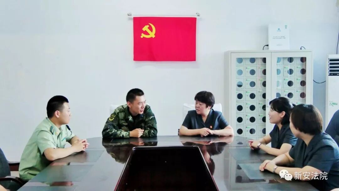 ▲2019年7月31日,为扎实推进“不忘初心,牢记使命”主题教育活动,进一步增强党组织的战斗堡垒作用,教育引导党员坚定理想信念,勇于担当作为,增强凝聚力,新安县人民法院民事支部结合八一建军节“送法进军营”活动,与武警中队的党员官兵共同开展7月主题党日活动。