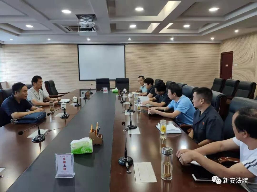 ▲8月9日下午,洛阳中院党组成员、纪检组长王朝宏一行到新安法院开展调研指导工作,围绕力戒形式主义官僚主义作风纪律大整顿活动、建设人民满意好法院活动、上半年工作情况等与新安法院班子成员进行深入细致座谈。