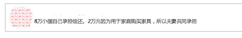 本案中,对小强借款中属于“家庭日常生活需要所负债务”部分进行认定时,要充分考虑当地经济水平、小强夫妻二人的日常生活消费、资金流向等,本案中有2万元借款被用于购置家具,故酌情确定此部分借款为夫妻共同债务。