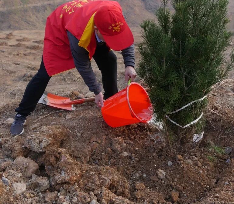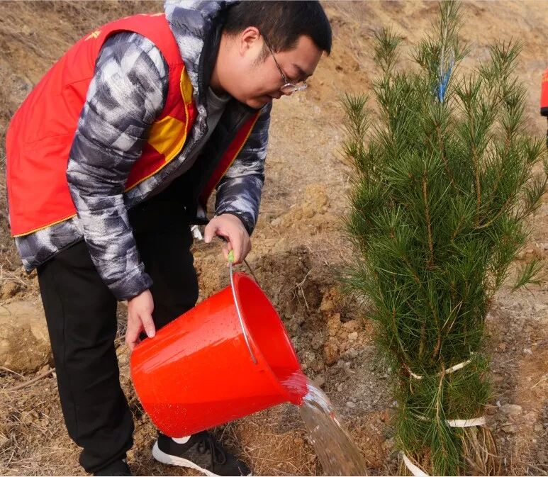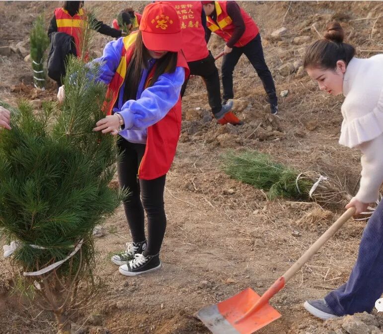 他们撸起袖子,挥锹铲土、扶植树苗、培实新土、分工合作、有条不紊,经过一个半小时的努力,共种下了50余棵树苗,为迎接来年的春天增添了新的希望。