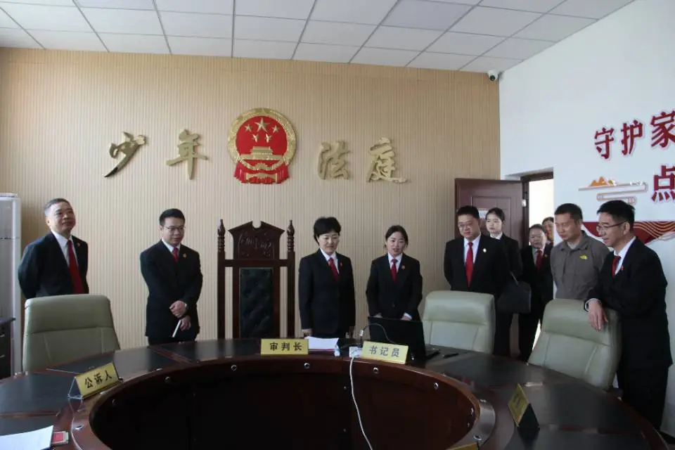 与会人员首先到四个基层法庭对基础设施建设、特色亮点工作、党建品牌打造等进行现场观摩调研。