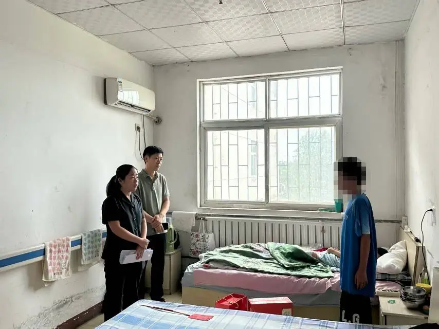 五头(少年)法庭法官受理这起特殊案件后,没有只看卷宗里的文字,而是带着温度走进了小王的生活。通过事先了解,法官得知小王目前正和父亲在养老院生活,在和检察院实地走访养老院时,大家看到的是小王在陌生环境里的拘谨——他会笨拙地帮父亲递水、翻身,却在被问起“想去哪里生活”时,小声说“愿意去福利院”。可当法官蹲下身,像朋友一样和他聊起学校的趣事、喜欢的动画片,小王才红着眼眶说出心里话:“我也不知道能去哪里了。”