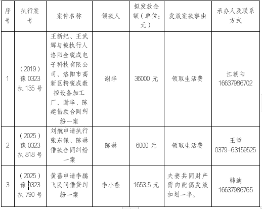 新安县人民法院关于向被执行人发放生活费案件的公示