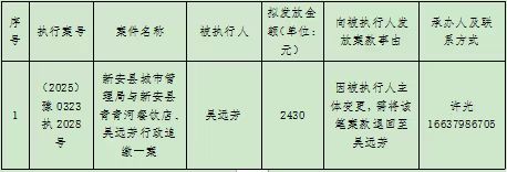 为进一步规范执行案款收发、管理,完善执行案款管理工作,维护当事人合法权益,防患廉政风险,现将新安县人民法院拟向被执行人发放案款的金额公示如下: