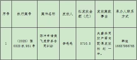 新安县人民法院关于向被执行人配偶发放案款的公示