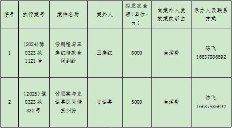 新安县人民法院关于向被执行人发放生活费案件的公示