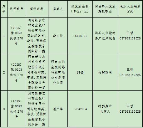 为进一步规范执行案款收发、管理,完善执行案款管理工作,维护当事人合法权益,防患廉政风险,现将新安县人民法院拟向案外人发放的金额公示如下: