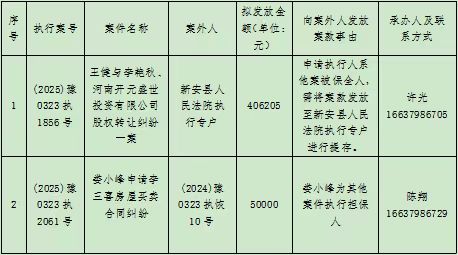为进一步规范执行案款收发、管理,完善执行案款管理工作,维护当事人合法权益,防患廉政风险,现将新安县人民法院拟向案外人发放的金额公示如下: