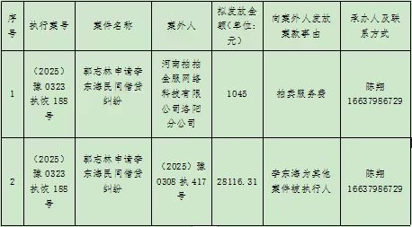 特别提示:公示期为3个自然日,期满后如无当事人提出异议,则以上款项将向案外人发放,监督电话:0379-63159551。