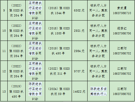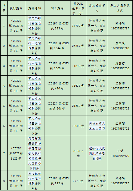 特别提示:公示期为3个自然日,期满后如无当事人提出异议,则以上款项将向他案、被执行人、案外人发放,监督电话:0379-63159551。