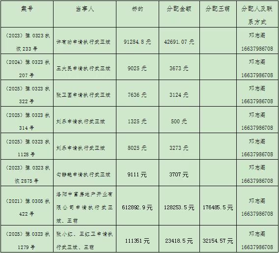 新安县人民法院关于案款转移的公示