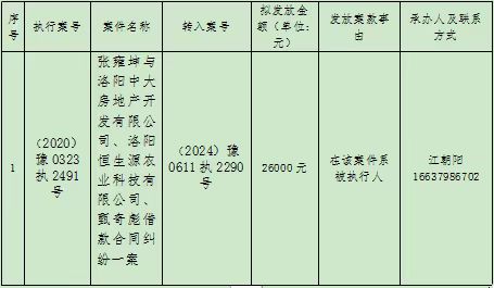 新安县人民法院关于向其他法院发放案款的公示