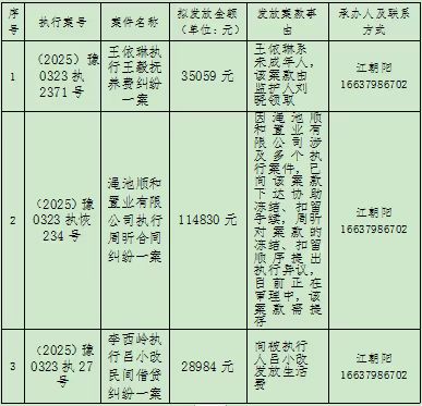 特别提示:公示期为3个自然日,期满后如无当事人提出异议,则以上款项将向申请人的监护人发放案款、进行案款提存、向被执行人发放,监督电话:0379-63159551。