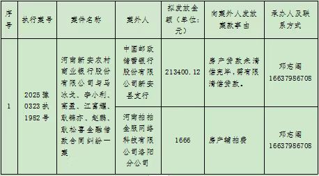 新安县人民法院关于向案外人发放案款案件的公示