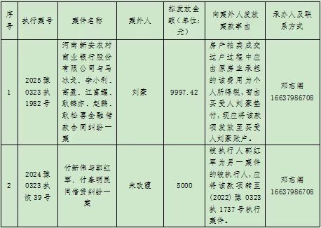 特别提示:公示期为3个自然日,期满后如无当事人提出异议,则以上款项将向案外人发放,监督电话:0379-63159551。
