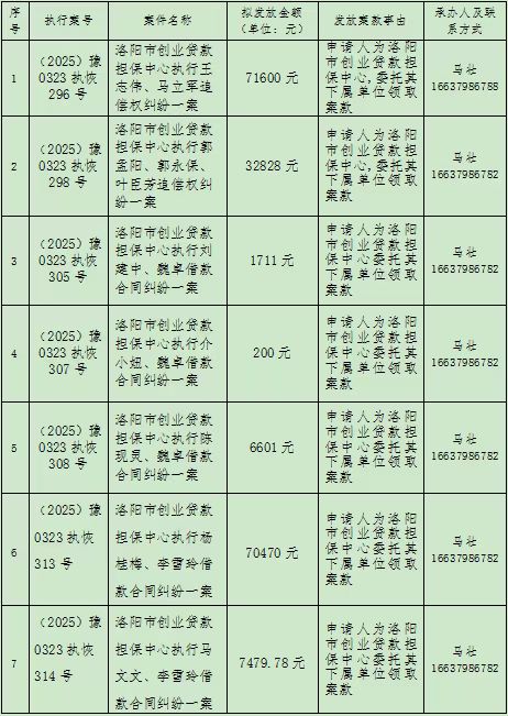 特别提示:公示期为3个自然日,期满后如无当事人提出异议,则以上款项将向案外人发放、提存案款,监督电话:0379-63159551。