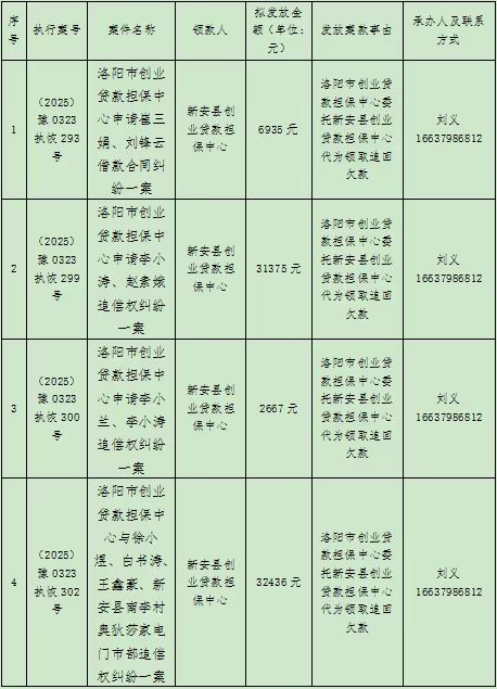 新安县人民法院关于向他案发放案款的公示