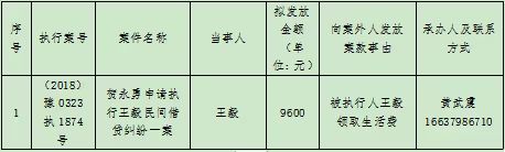 新安县人民法院关于向被执行人发放生活费案件的公示