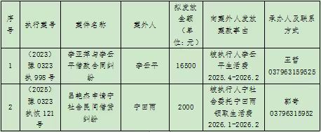 新安县人民法院关于向案外人发放案款案件的公示
