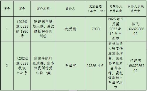 特别提示:公示期为3个自然日,期满后如无当事人提出异议,则以上款项将向案外人发放,监督电话:0379-63159551。