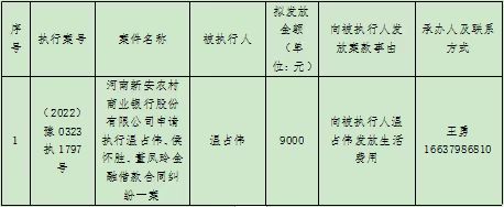 新安县人民法院关于向被执行人发放生活费案件的公示
