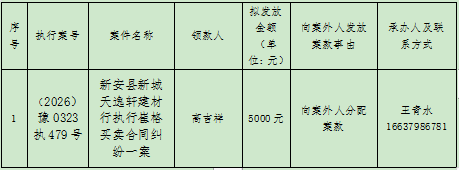 新安县人民法院关于向案外人发放案款案件的公示