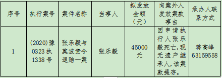新安县人民法院关于向案外人发放案款案件的公示